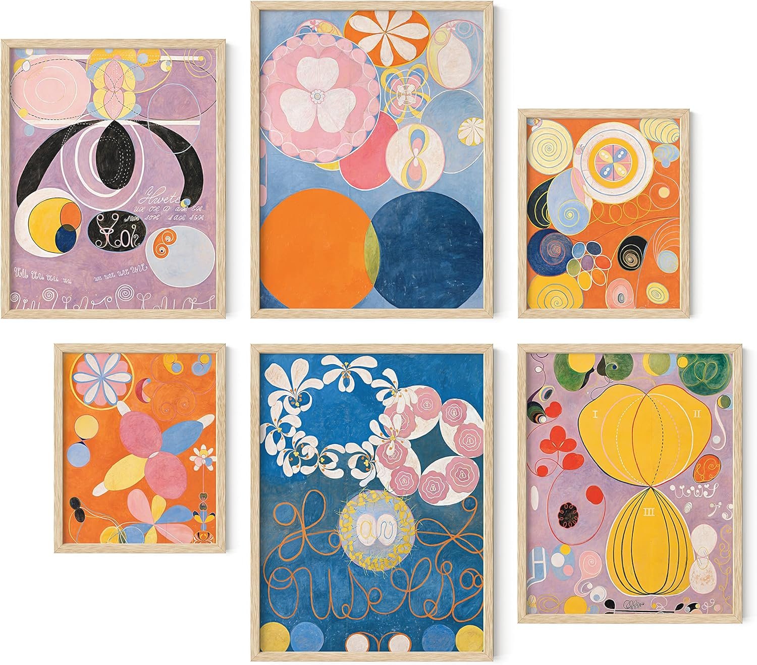 - ABSTRACT PAINTING: Mystical and wondrous, these classic art prints feature paintings by Hilma af Klint, which show enigmatic shapes, eclectic flowers, and vibrant color combinations. The circular shapes create a feeling of harmony, calmness, peacefulness, and relaxation. Classic paintings wall art sets are a great way to improve and elevate any space you place them in